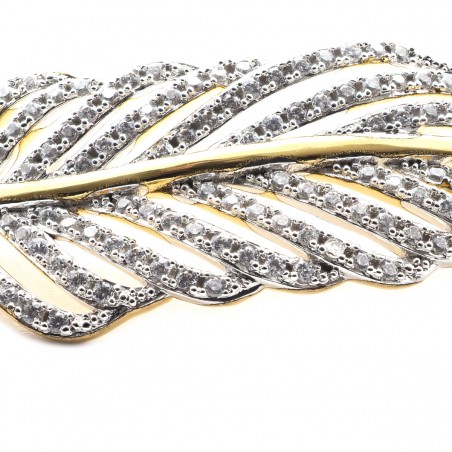 Bracelet Carador motif plume, oxydes de zirconium sertis, plaqué or