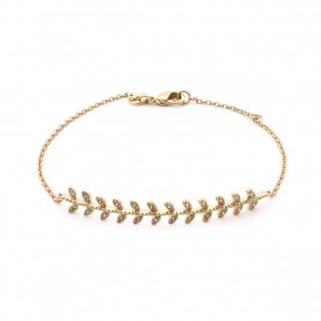Bracelet Carador plaque découpée laurier oxydes de zirconium sertis en plaqué or