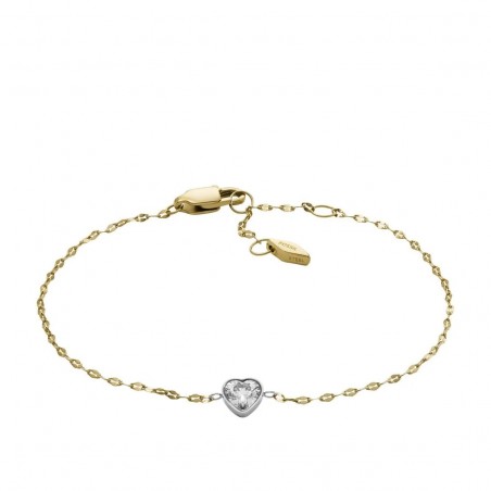 Bracelet coeur Femme Fossil en acier doré et oxyde de zirconium
