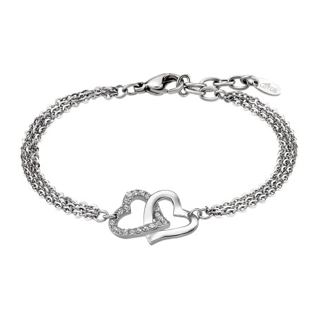 Il se compose d'une chaîne en acier argenté ainsi que d'un motif cœur qui s'entremêlent dont un orné de pierres incolores.