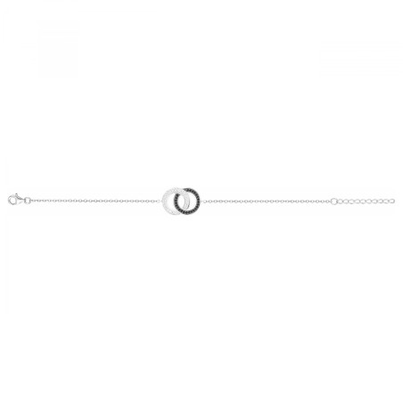 Bracelet doubles anneaux femme carador en argent avec oxydes de zirconium noir et blanc