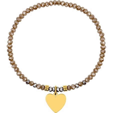 Bracelet élastiqué Amporelle cristaux roses et pampille coeur en acier doré