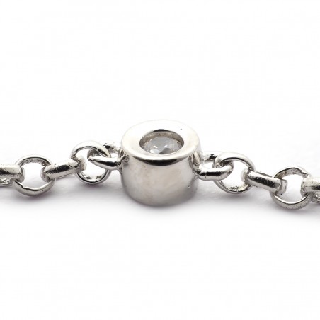Le bracelet est agrémenté de plusieurs pierres d'oxyde de zirconium, serties en clos, qui captent la lumière pour ajouter une touche d'éclat à votre allure. Sa couleur argentée offre un contraste subtil avec les pierres blanches, créant un look à la fois sophistiqué et intemporel.