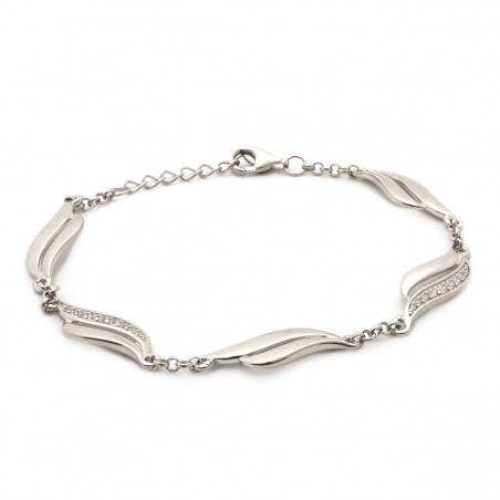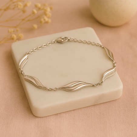 Ce magnifique bracelet est en argent et possède plusieurs motifs en forme de vagues dont certains incrustés d'oxydes de zirconium.
