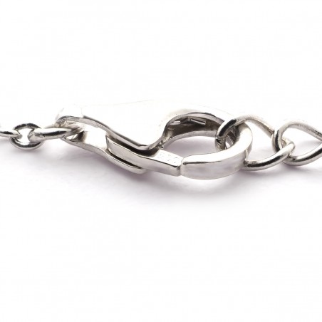 Ce bracelet est du type fantaisie, marqué par un subtil jeu de formes et de matières. Sa maille forçat lui confère une robustesse certaine tout en conservant une légèreté appréciable à son porté. Le zirconium blanc offre un contraste doux avec le métal argenté, en faisant un bijou intemporel et adaptable à toutes les tenues.