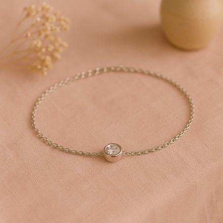 Bracelet en argent motif rond serti d'un oxyde de zircunium