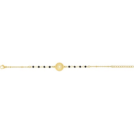 Bracelet Fantaisie Amporelle en acier doré et cristaux noirs avec une plaque ajourée