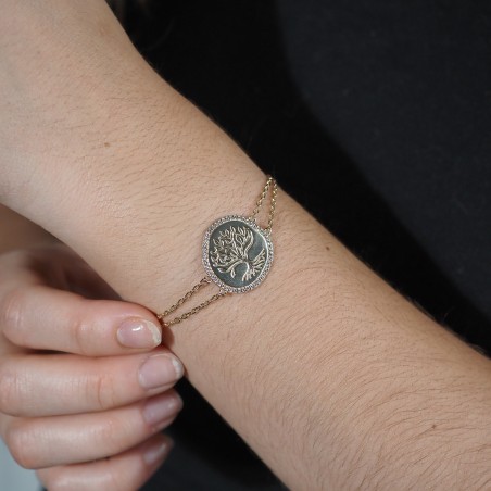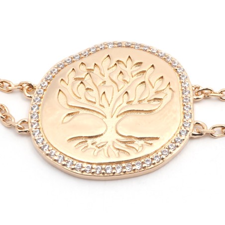 Bracelet fantaisie doubles chaînes motif arbre de vie femme carador en plaqué or avec oxydes de zirconium