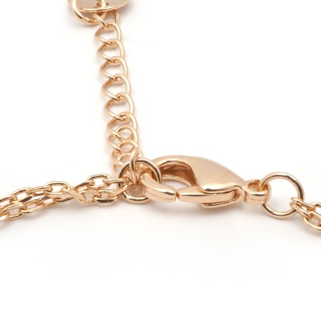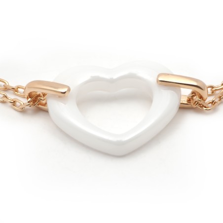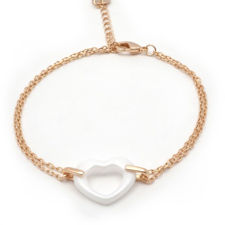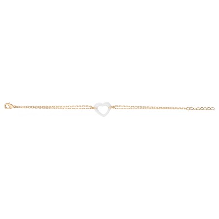 Bracelet fantaisie doubles chaînes motif cœur femme carador en plaqué or avec oxydes de zirconium et céramique blanche