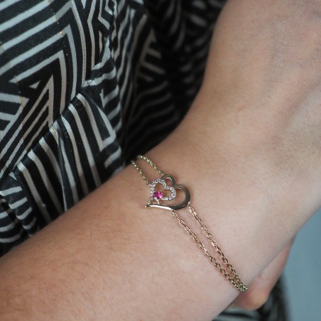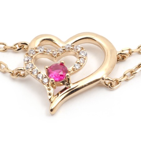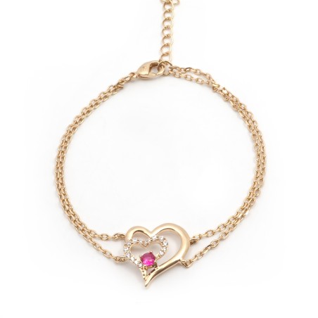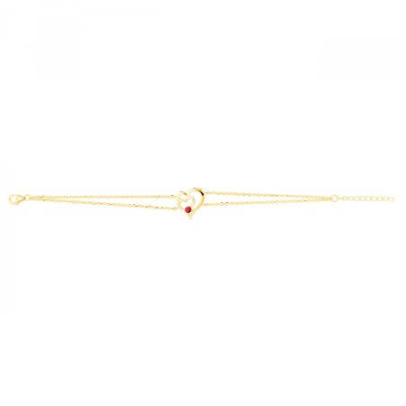 Bracelet fantaisie femme carador en plaqué or avec oxydes de zirconium et spinelle rouge motif cœur