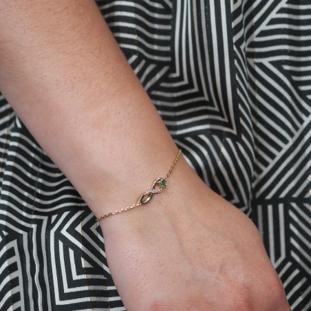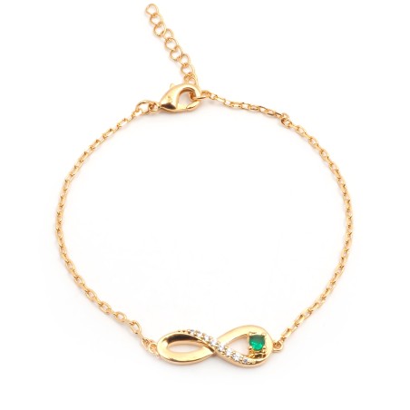 Bracelet fantaisie femme carador en plaqué or avec oxydes de zirconium et spinelle vert motif signe infini
