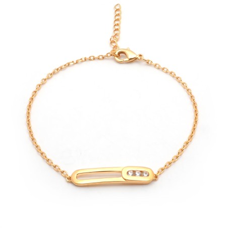 Bracelet fantaisie femme carador en plaqué or avec oxydes de zirconium style trombone