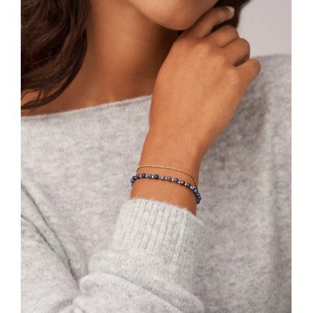 Bracelet Femme All Stacked Up en acier doré et lapis-lazuli bleu