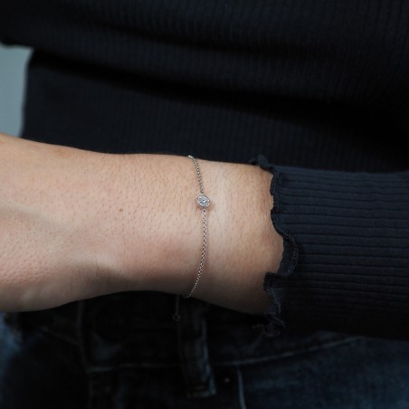 Sa longueur de 18 cm convient parfaitement à toutes les tailles de poignet, assurant un port confortable tout au long de la journée. Le bijou est orné d'un cercle de 4 mm, recouvert de diamants scintillants, qui ajoute une touche de sophistication.