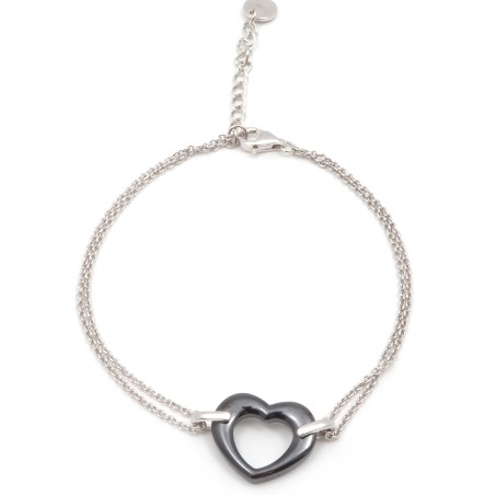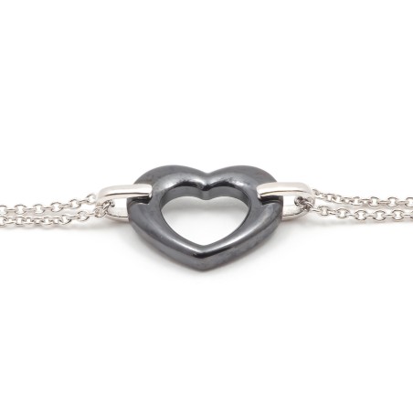 Bracelet Femme carador en argent avec cœur en céramique noire