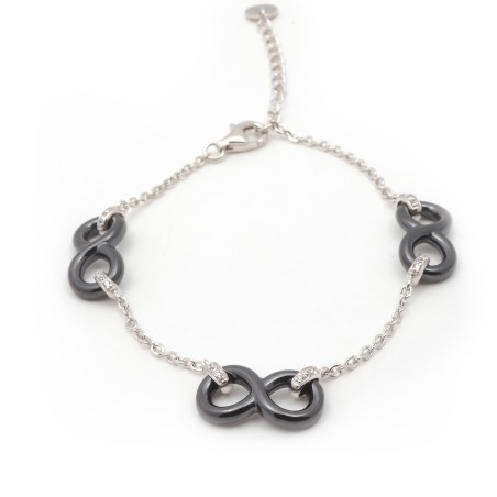 Bracelet femme carador en argent avec signes de l'infini en céramique noire et oxydes de zirconium