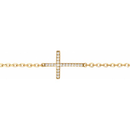 Bracelet Femme Carador en Plaqué Or et Oxydes de zirconium Motif croix Maille forçat