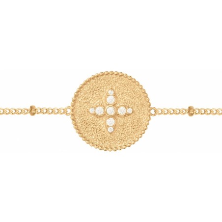 Bracelet Femme Carador en Plaqué Or et Oxydes de zirconium plaque ronde Motif croix