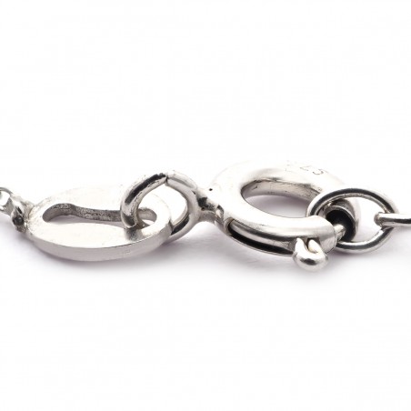 La chaîne principale mesure 17 cm, complétée par une chaînette de rallonge de 3 cm, permettant un ajustement parfait à votre poignet. Sa couleur argentée lui donne un aspect à la fois chic et intemporel. Sa matière en argent 925/000 garantit sa durabilité et son éclat au fil des années.