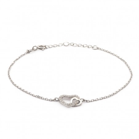 Découvrez ce charmant bracelet pour femme de la bijouterie Carador, un bijou au design délicat et élégant. Réalisé en Argent 925/000, ce bracelet possède une fine chaîne en maille forçat de 16 cm, réglable grâce à une rallonge de 3 cm. Au centre de ce bijou se trouve un motif de cœurs entrelacés, mesurant 9 x 10 mm, symbole universel de l'amour. L'un des cœurs est incrusté d'oxydes de zirconium, apportant un éclat subtil à l'ensemble. Le fermoir de type anneau à ressort garantit une fermeture sécurisée du bracelet. Avec son allure classique et sa teinte argentée, ce bracelet fantaisie conviendra à tous les styles. C'est le cadeau idéal pour exprimer vos sentiments ou simplement pour gâter une femme chère à votre cœur. Son design intemporel et ses détails soignés en font un bijou de choix pour toutes les occasions.