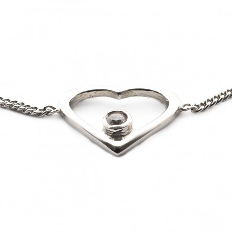 Ce bracelet fantaisie, d'une longueur de 19 cm, s'adapte à tous les poignets pour un port quotidien confortable. Sa couleur argentée se marie aisément à toutes vos tenues, pour une allure à la fois tendance et intemporelle. Le coeur, orné d'un oxyde de zirconium blanc, ajoute une touche de brillance à ce bijou, capturant la lumière à chaque mouvement.