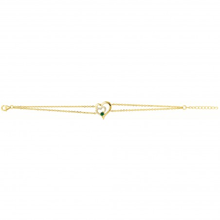 Bracelet Femme Carador - Plaqué Or - Duo de coeurs avec spinelle vert