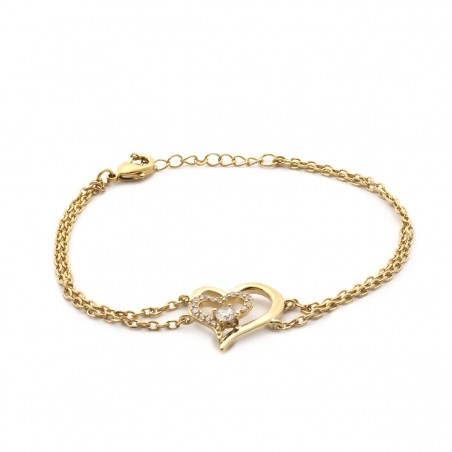 Bracelet Femme Coeur en Plaqué Or et Oxyde de Zirconium Blanc