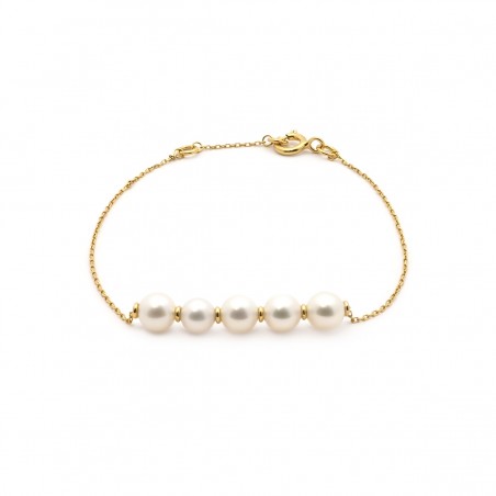 Les multiples perles blanches qui l'agrémentent apportent une touche de fantaisie, lui conférant un style tendance. Le système de fermeture mousqueton assure une sécurité optimale lors du port de ce bijou. Ce bracelet se marie aisément avec toutes vos tenues, pour un port quotidien ou lors d'occasions spéciales.
