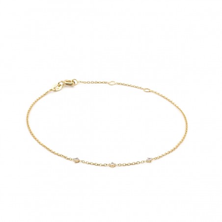 Révélé par votre bijoutier Carador, ce Bracelet Femme en Or Jaune 375 RH Diamant/Scut 2B est le bijou qui sublimera votre poignet. Son design tendance est l'expression de la féminité moderne. Fabriqué en or jaune 375/000, ce bijou dévoile une brillance unique grâce à la présence de trois diamants blancs.