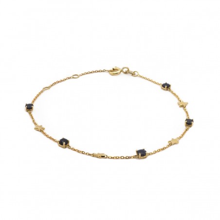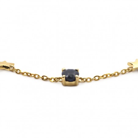 Découvrez ce bracelet pour femme signé Carador, une alliance parfaite entre classicisme et tendance. Ce bijou se distingue par sa chaîne maille forçat élaborée en or jaune 375/000, une matière noble et durable. Il est orné de cinq saphirs d'un bleu intense, apportant une touche de couleur et d'éclat. Sa longueur est de 18 cm, une taille idéale pour un port confortable.