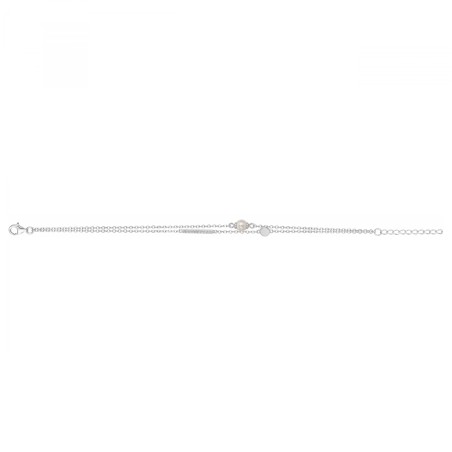 Bracelet femme fantaisie Carador double chaînes en argent et oxyde de zirconium et perle