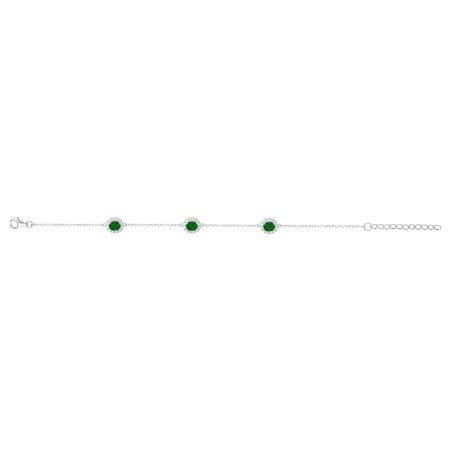 Bracelet femme fantaisie Carador en argent et 3 spinelles vertes entourées d'oxydes