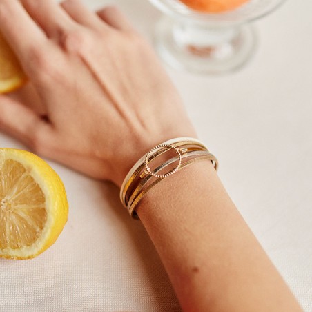 BRACELET FEMME FLOWERS FOR ZOE ANNABELLE MY WAY EN ARGENT DORE ET CUIR 18 CM