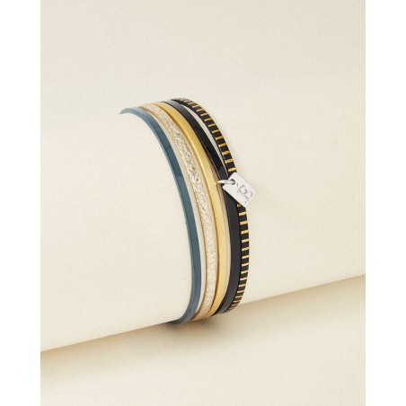 Bracelet Femme Flowers for Zoé Artiste Noir Désir en argent et cuir 18 CM