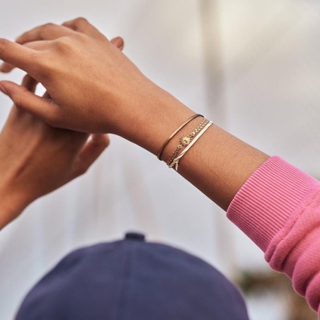 BRACELET FEMME FLOWERS FOR ZOE BALSAM EN ARGENT DORE ET CUIR 17 CMN