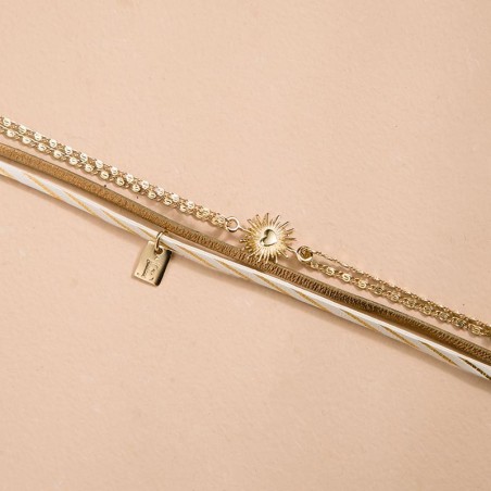 BRACELET FEMME FLOWERS FOR ZOE BALSAM EN ARGENT DORE ET CUIR 18 CM
