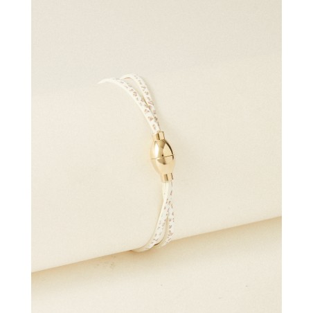 Bracelet Femme Flowers for Zoé Béa en argent doré et cuir 18 CM