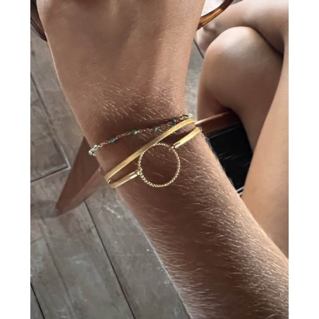 Bracelet Femme Flowers for Zoé Enola en argent doré avec pierres turquoises 17 CM