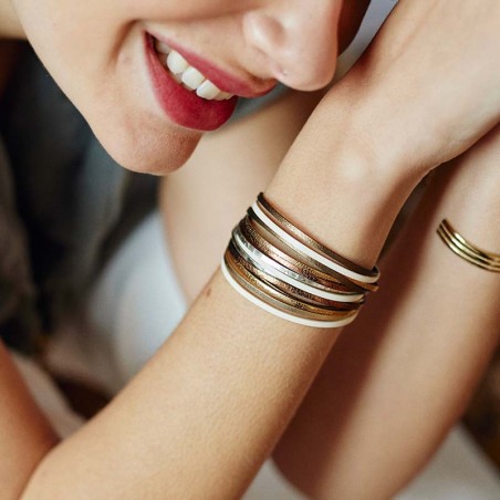 BRACELET FEMME FLOWERS FOR ZOE PEONY LUXE MY WAY EN ARGENT DORE CUIR 17.5 CM