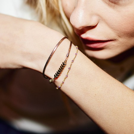 BRACELET FEMME FLOWERS FOR ZOE SERENDI METALLIC BROWN AMETHYSTE EN ARGENT DORE CUIR 17 CM