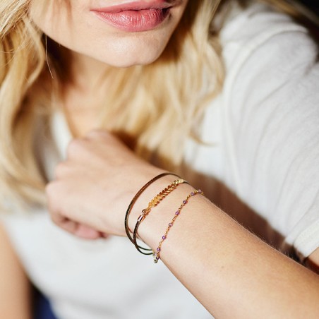 BRACELET FEMME FLOWERS FOR ZOE SERENDI METALLIC BROWN AMETHYSTE EN ARGENT DORE CUIR 18 CM