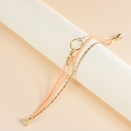 BRACELET FEMME FLOWERS FOR ZOE TABATHA BLOOM EN ARGENT DORE ET CUIR ROSE 18 CM
