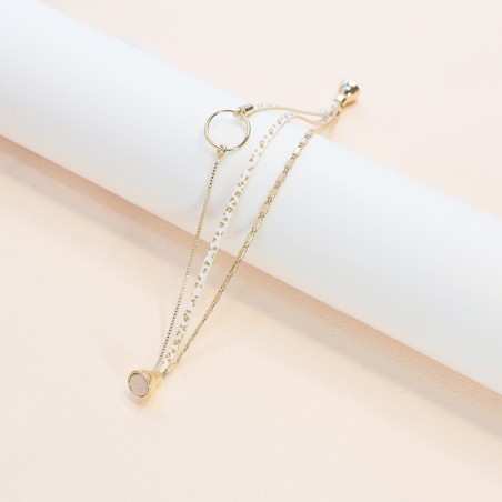 BRACELET FEMME FLOWERS FOR ZOE TABATHA SABLE LEO EN ARGENT DORE ET CUIR 18 CM