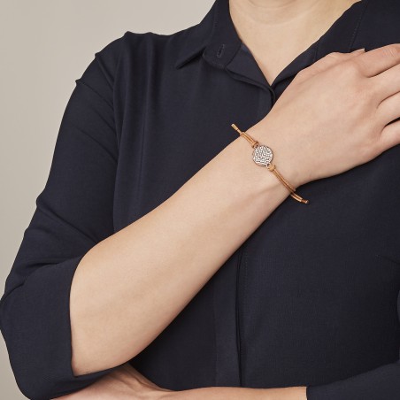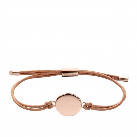 Le bracelet Glitz Fossil pour femme affiche un charme irrésistible avec son design frais et délicat. Il se compose d'un lien en cuir marron clair, doux pour la peau et agréable à porter. Une plaque ronde en acier doré rose, délicatement ornée d'un motif à chevrons, est sublimée de cristaux pour une touche de lumière. Les reflets rosés du métal se marient parfaitement avec les tons chauds du cuir, offrant un bijou équilibré et harmonieux. Les dimensions de 57,2 + 40mm garantissent un ajustement parfait à votre poignet. L'élégance intemporelle de ce bracelet est signée Fossil, marque reconnue pour sa capacité à allier modernité et héritage vintage. Ce bijou est une véritable déclaration de style qui s'accordera facilement à vos tenues quotidiennes ou pour des occasions spéciales. Ajoutez une touche de sophistication à votre look avec le bracelet Glitz Fossil.