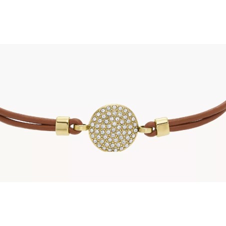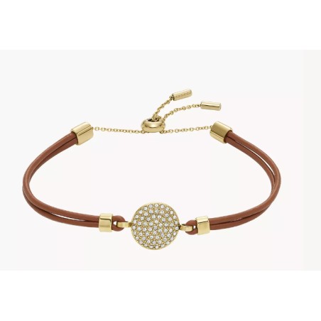 Bracelet Femme Fossil Sadie en acier doré et cuir marron avec disque scintillant