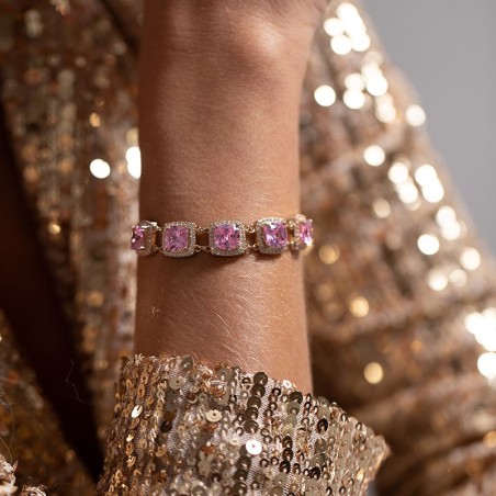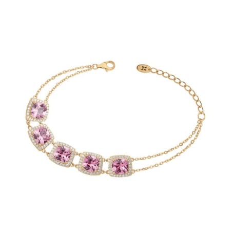 BRACELET FEMME GRIFFE ROUGE MARGARET PLAQUE OR ET OXYDES ROSES