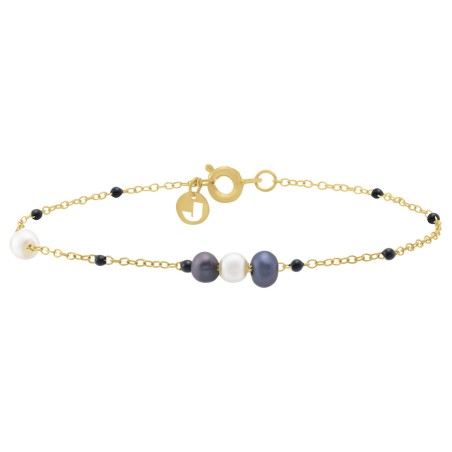 Bracelet Femme Jourdan en Or 375/000 jaune et Perles noires et blanches Maille forçat
