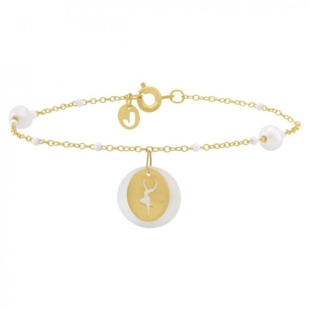 Bracelet Femme Jourdan Or 375/000 Pampille Nacre et dorée et Perles blanches Maille forçat