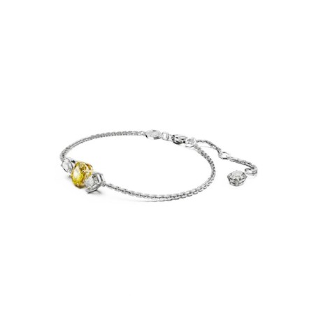 Le bracelet est orné de cristaux éblouissants, qui scintillent à chaque mouvement du poignet. La couleur jaune des pierres apporte une touche de gaieté et de fraîcheur à ce bijou, le rendant idéal pour les occasions festives ou pour réhausser un look quotidien.