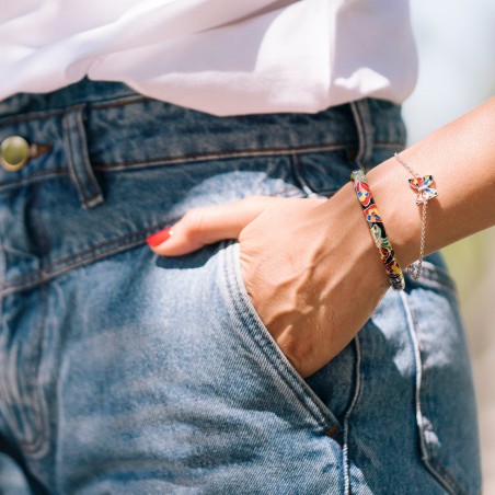 Long de 17,5 cm, ce bracelet est orné de laque et de pierres multicolores qui apportent une touche d'originalité et de sophistication. Sa couleur multicolore offre une variété de nuances qui se marient harmonieusement avec toute tenue. Le bracelet Papillon est une invitation à déployer vos ailes et à exprimer votre personnalité avec assurance.